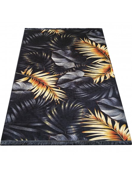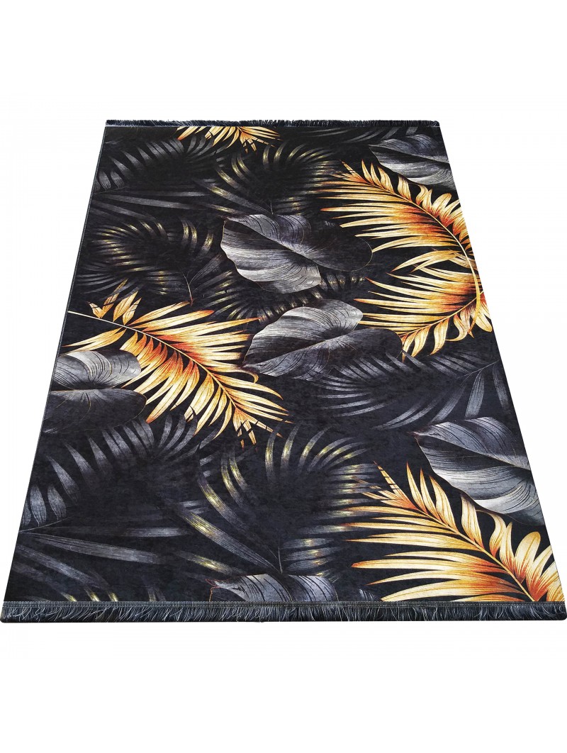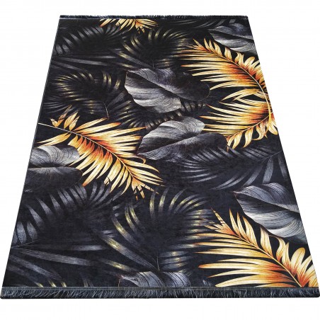 Dywan nowoczesny do prania BLACK and GOLD 06 - liście jungle
