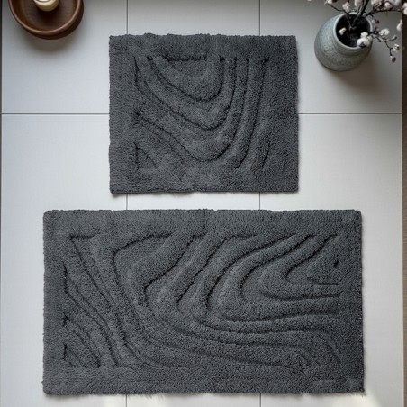 Na komplet składają się dwa dywaniki łazienkowe, w rozmiarze: 60 cm x 100 cm i 50 cm x 60 cm.