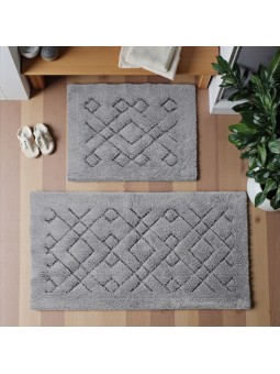 Na komplet składają się dwa dywaniki łazienkowe, w rozmiarze: 60 cm x 100 cm i 50 cm x 60 cm.
