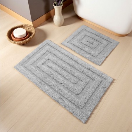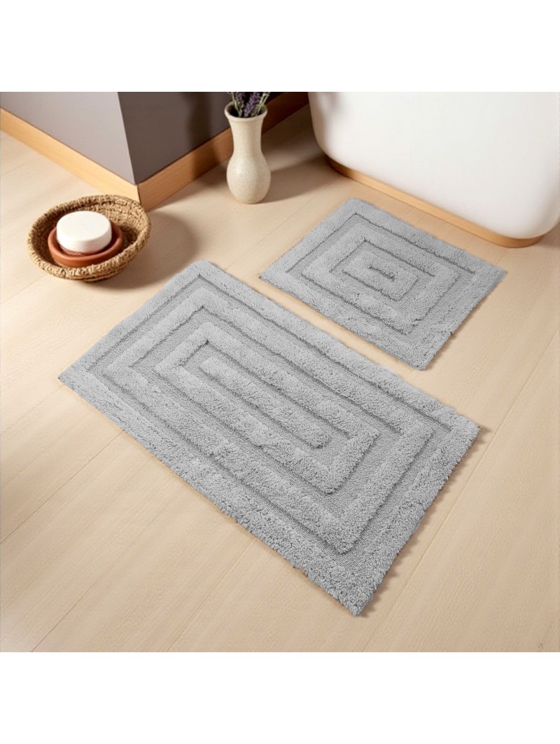 Na komplet składają się dwa dywaniki łazienkowe, w rozmiarze: 60 cm x 100 cm i 50 cm x 60 cm.